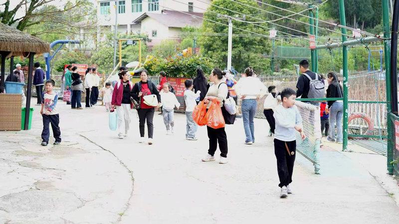 除了石刻景区,悦缘花谷同样人气高涨。走进谷内,各类鲜花竞相绽放,众多游客驻足拍照、打卡留念。“趁着春假,我们几家大人带着小朋友一起来烧烤,既能享受美食美景,也能好好陪陪孩子。”带着孩子游玩的蒋女士开心地说。除了赏花和烧烤,景区内的彩虹滑道、迪斯科转盘、丛林穿梭等项目也备受游客青睐。