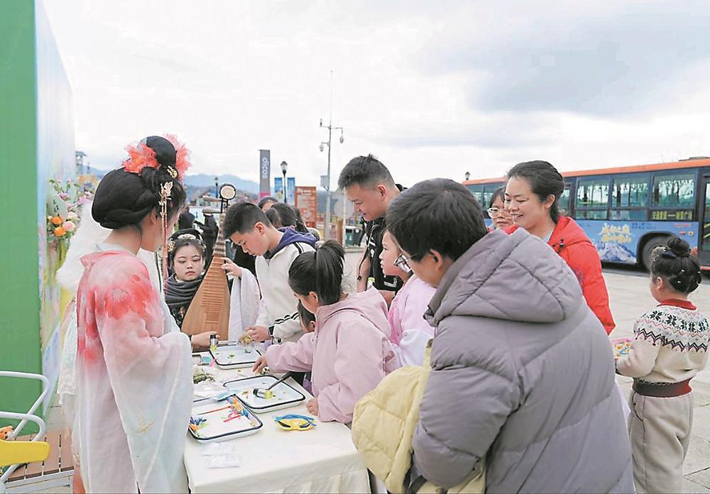 “本来只想带孩子来爬爬山,没想到遇到了国风‘仙侍’,还学到了这么多植物知识,很值!”来自重庆的游客王女士,正牵着女儿的手,在专业向导的指引下辨认鹿耳韭。女儿蹲在草丛旁,拿着笔记本认真记录。王女士告诉记者,春假期间景区免门票,还能体验轻徒步和非遗互动。