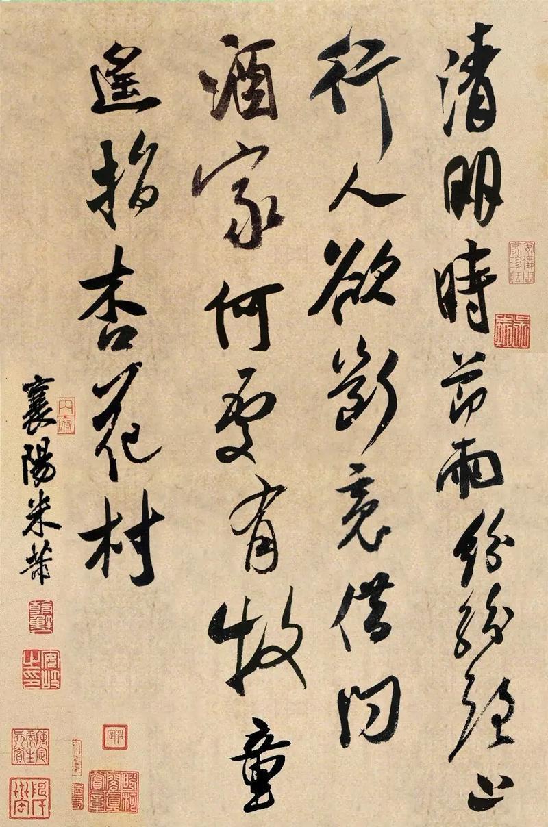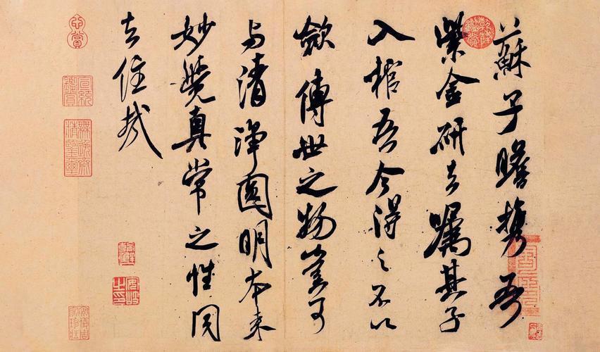 他的行书,潇洒痛快,和苏东坡、黄庭坚、蔡襄并称“宋四家”。他画画独创“米点皴”,用大大小小的墨点堆出云雾濛濛的山水,人称“米家山水”。